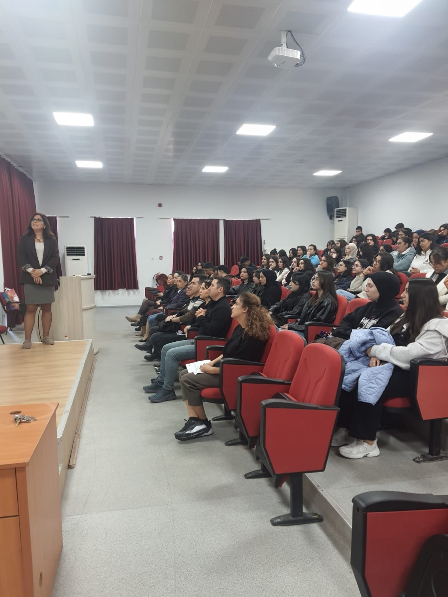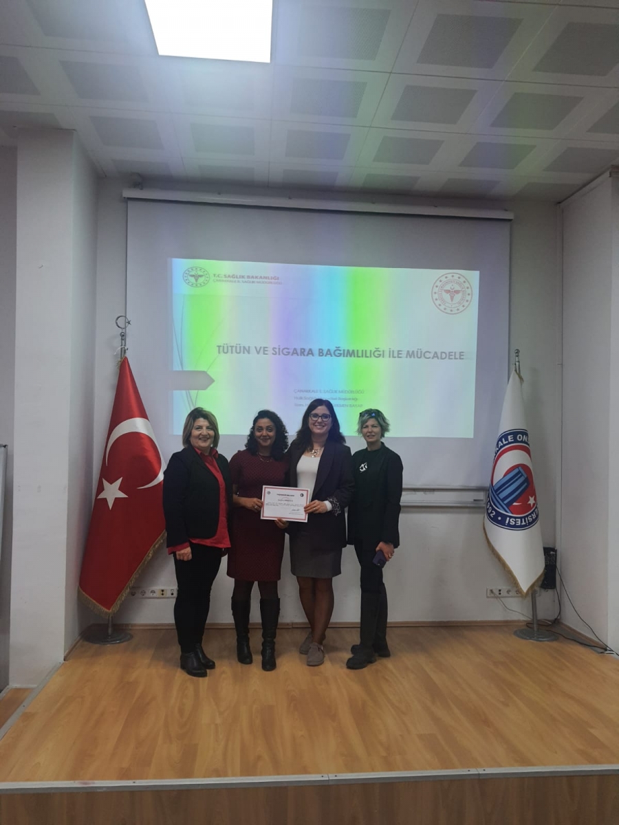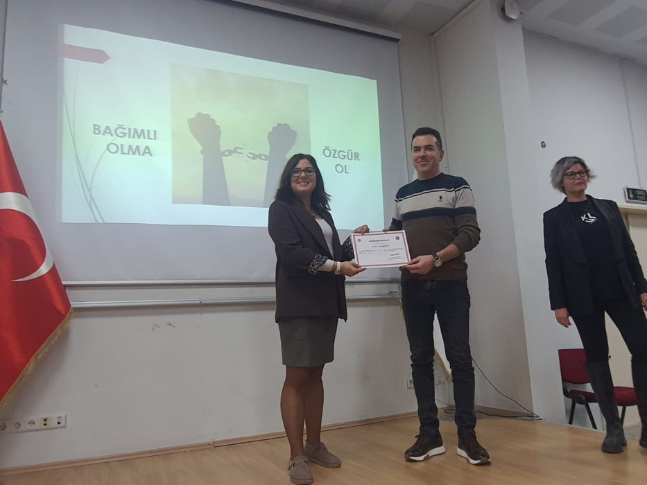 Okulumuz konferans salonunda 1.12.2025 Pazartesi günü saat 11.00’da Çanakkale Halk Sağlığı Müdürlüğü, Çevre Sağlığı Biriminden Sayın Rabia TÜRKMEN BAYAR tarafından “Tütün ve Sigara Bağımlılığı” semineri gerçekleştirildi. Öğrencilerimizin ve öğretim elemanlarımızın yoğun ilgi gösterdiği konferansta tütün kullanımının sağlık üzerindeki olumsuz etkileri, bağımlılık mekanizması, pasif içicilik ve bırakma yöntemleri konusunda kapsamlı bilgilendirme yapıldı. Öğrenciler bu konudaki bilgi ve farkındalıklarının artmasından dolayı memnuniyetlerini ifade ettiler.
